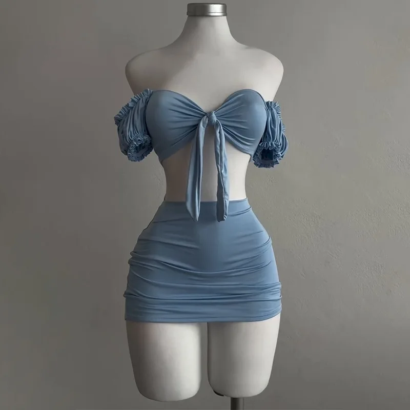 2 Piece Set Women Summer Lace Up Party Club Outfits