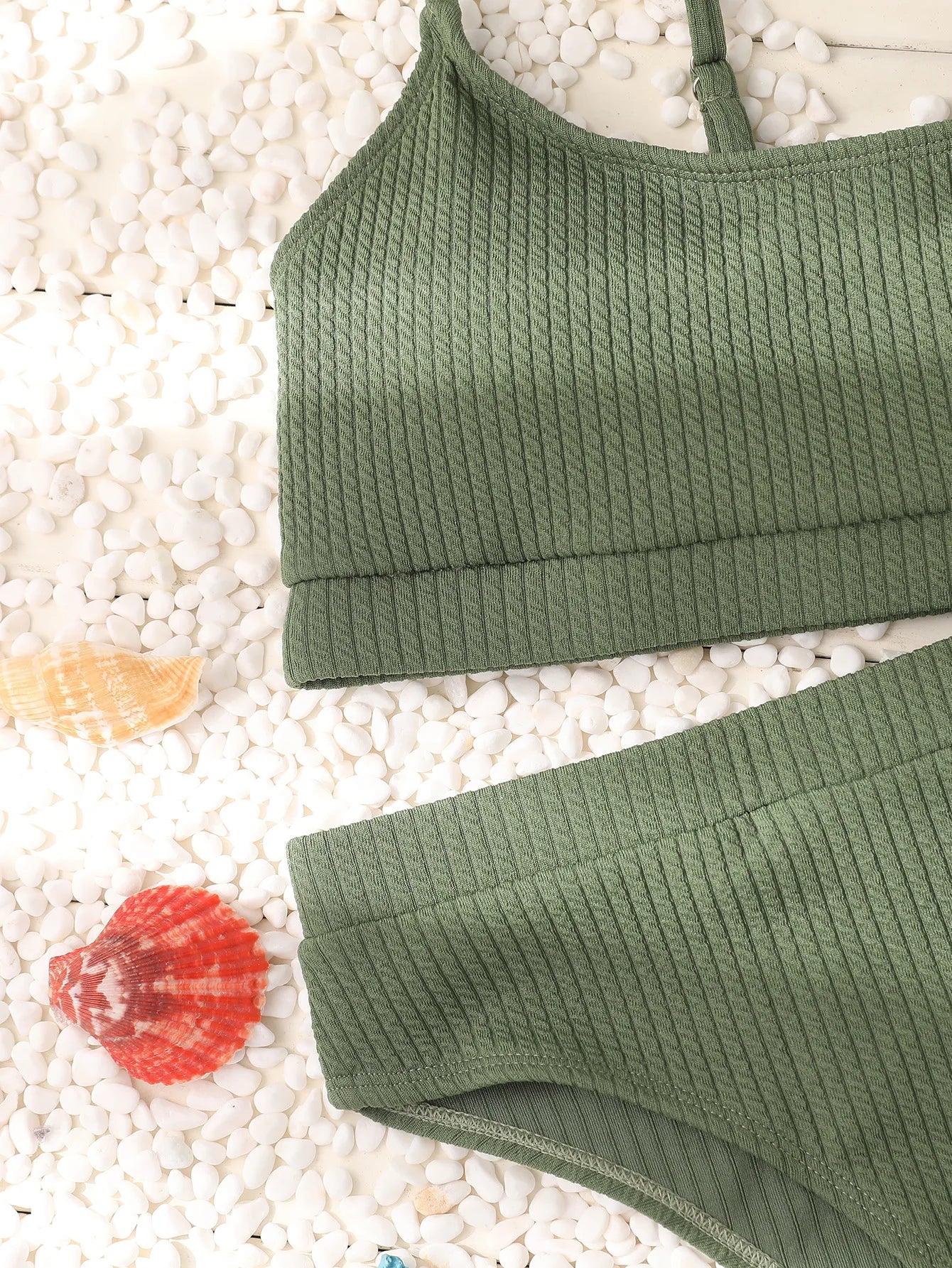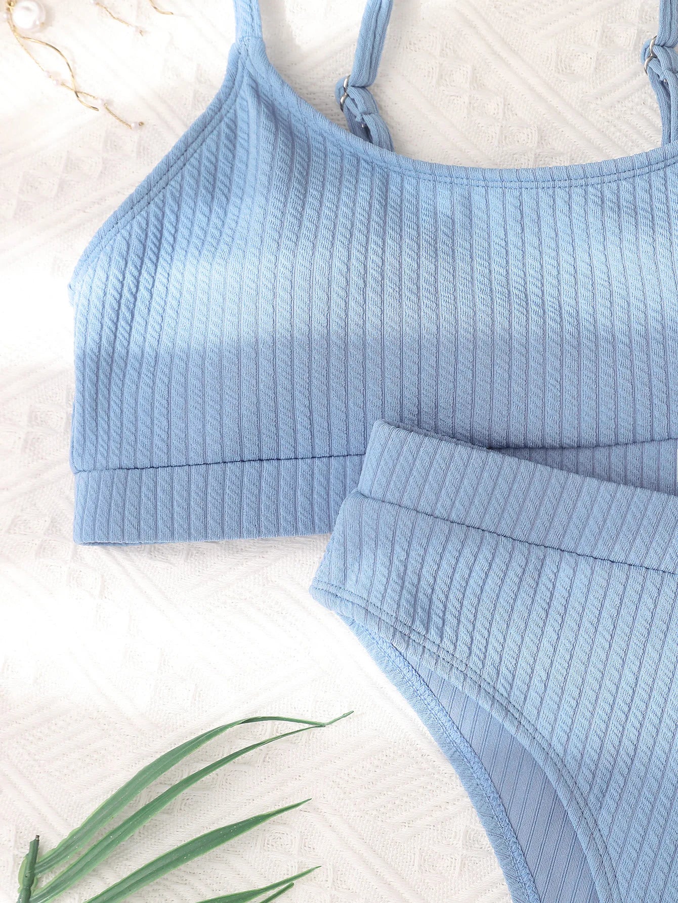 Sexy Solid Yellow Bikini 2024 Mujer High Cut Pleate Women's Swimsuit Separate Beach Bathing Suit High Waist Swimwear Biquini New
